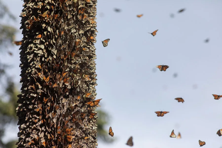 Este fenómeno migratorio “representa que se llevan las almas de nuestros seres queridos”, según explicó el gobernador del estado, Alfredo Ramírez Bedolla, durante la apertura del santuario de Sierra Chincua, la semana pasada, se registró por primera vez de manera oficial en 1975 y sigue siendo una incógnita para los expertos.