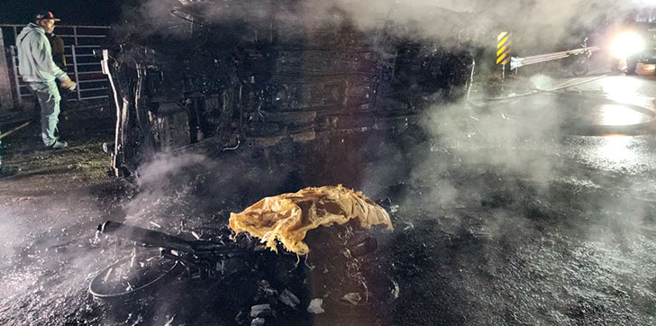 De acuerdo con informaciones preliminares, la víctima —cuya identidad permanece sin determinar— se desplazaba en una motocicleta cuando perdió el control e impactó contra un puente. Posteriormente fue arrollada por un automóvil que, tras la colisión, se incendió, quedando el cuerpo atrapado bajo el vehículo en llamas.