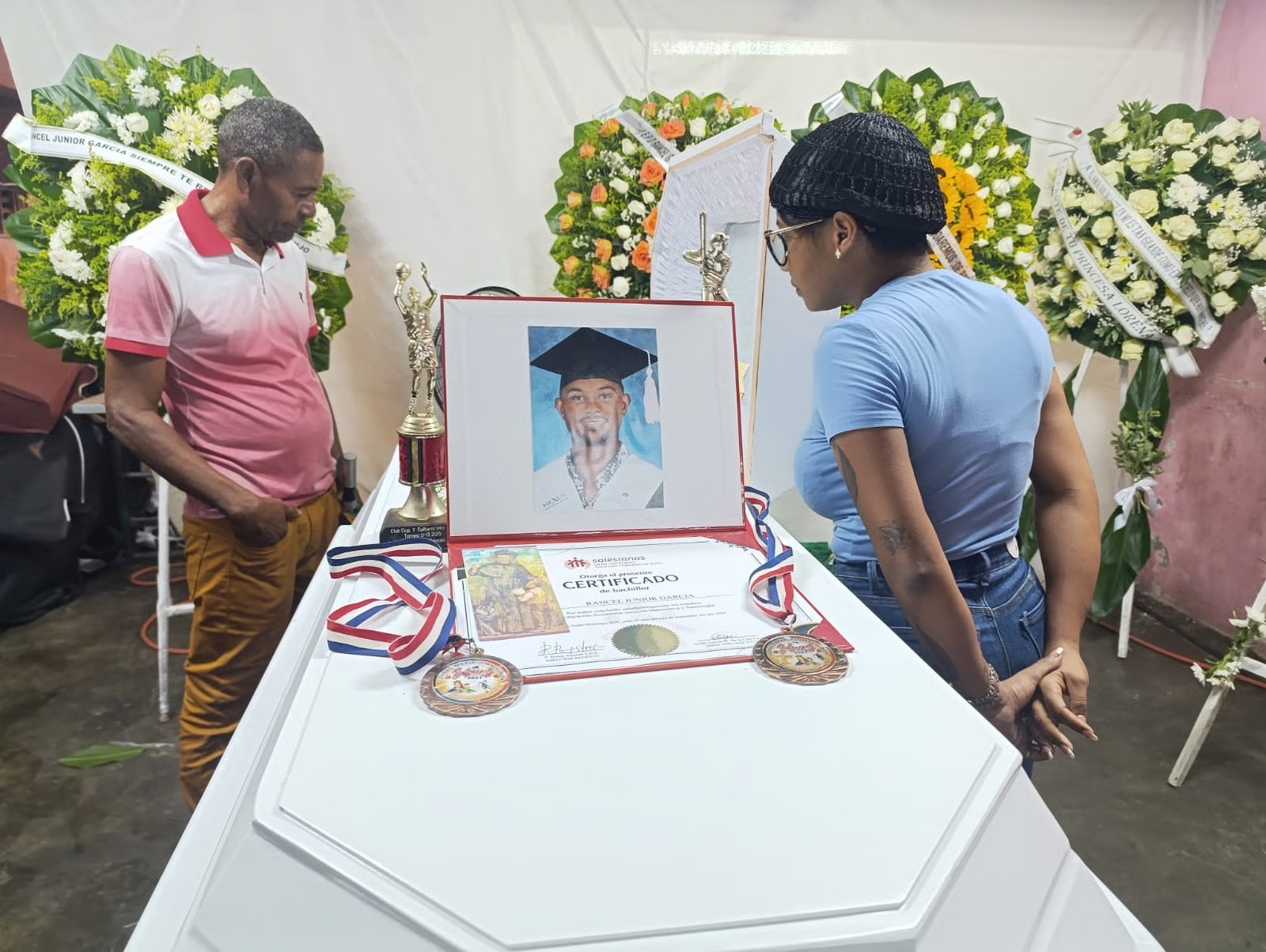 Junto al féretro de Rancel fueron colocados títulos, medallas y trofeos que obtuvo a lo largo de su vida, lo que evidencia el firme deseo de superación que tenía.