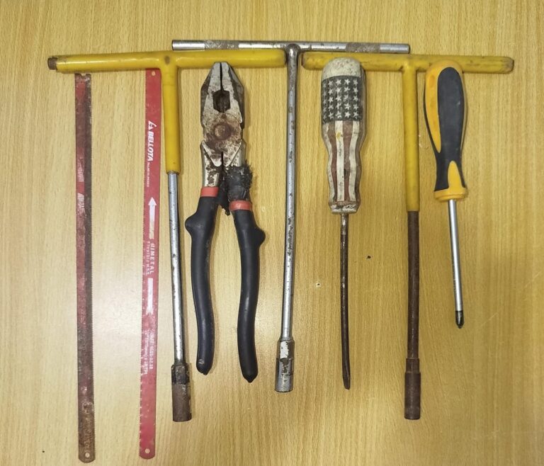 A los arrestados se les ocuparon varias herramientas presuntamente utilizadas para cometer el hecho. Ambos fueron trasladados al destacamento policial N-1 de Villa Mella y luego puestos a disposición del Ministerio Público para los fines legales correspondientes.