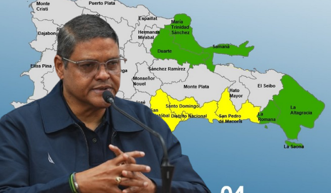 Las provincias en alerta amarilla son San Cristóbal, San Pedro de Macorís, Distrito Nacional y Provincia Santo Domingo.