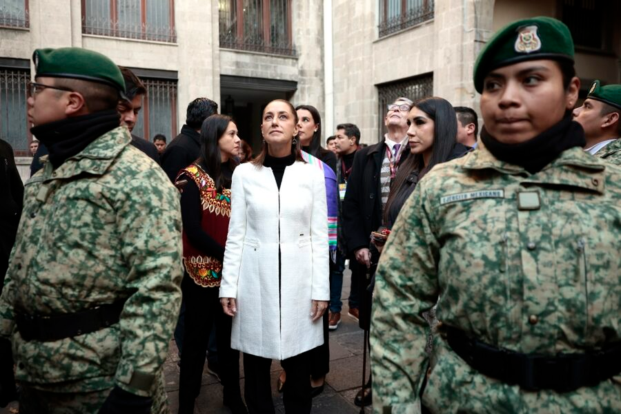 En imágenes difundidas posteriormente, se observa a la jefa del Ejecutivo en el patio central de Palacio Nacional, donde permaneció a la espera de las indicaciones de Protección Civil para determinar si era seguro reanudar la actividad.