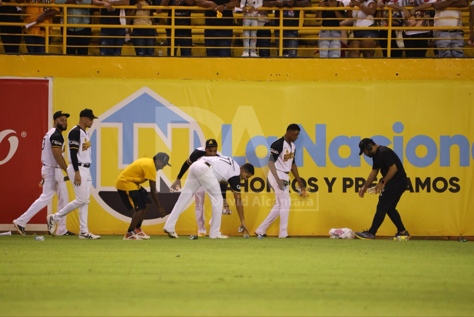 SANTIAGO.– El campocorto dominicano Geraldo Perdomo, acompañado por varios integrantes de las Águilas Cibaeñas, dio una muestra de conducta responsable y respeto al colaborar en la limpieza del terreno de juego del Estadio Cibao, luego de que fanáticos arrojaran desperdicios desde las gradas tras una decisión arbitral que generó controversia.