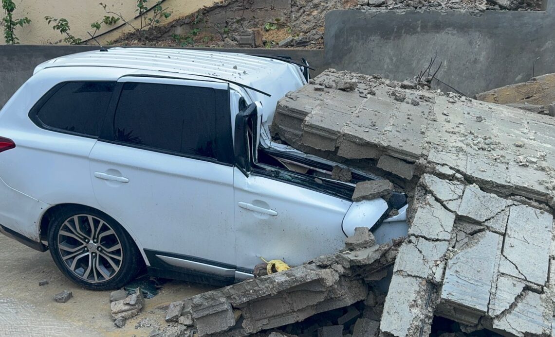 El hecho involucró una yipeta Mitsubishi Outlander, que quedó sepultada bajo una estructura de blocks luego del colapso de la pared. Afortunadamente, no se registraron personas lesionadas.
