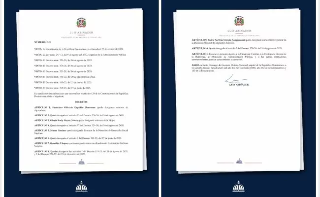 Santo Domingo, RD.- El presidente Luis Abinader anunció nuevas designaciones en el Ministerio de Agricultura, en la Dirección General de Impuestos Internos y en el Gabinete de Políticas Sociales.