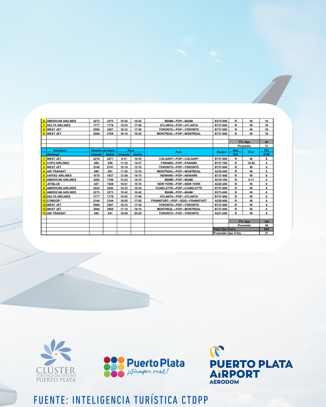 «Más conectividad significa más visitantes, más oportunidades y más razones para seguir eligiendo a la Novia del Atlántico como un destino auténtico y diverso», indicaron las entidades de turísticas de la zona como el Clúster Turístico Destino Puerto Plata (CTDPP) y la Asociación de Hoteles, Restaurantes y Empresas Turísticas del Norte (Ashonorte) a través de sus redes sociales.