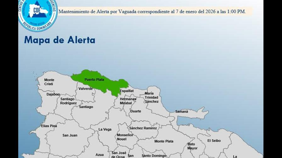 El Centro de Operaciones de Emergencias (COE) informó al mediodía de este miércoles que mantiene el nivel de alerta verde para la provincia Puerto Plata, debido a las condiciones meteorológicas pronosticadas por el Instituto Nacional de Meteorología (Indomet).