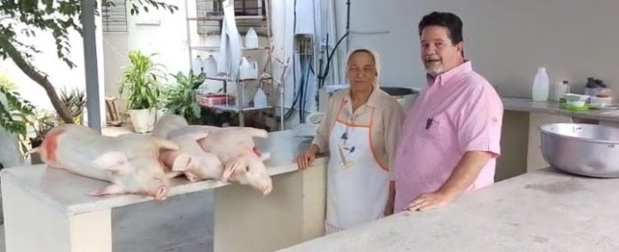 Dicha institución gubernamental fue representada por su subdirector; Milton Núñez Redondo, quien entregó los cerdos sacrificados en el Hogar de Ancianos San Antonio María Claret y la Casa Albergue de Martina.