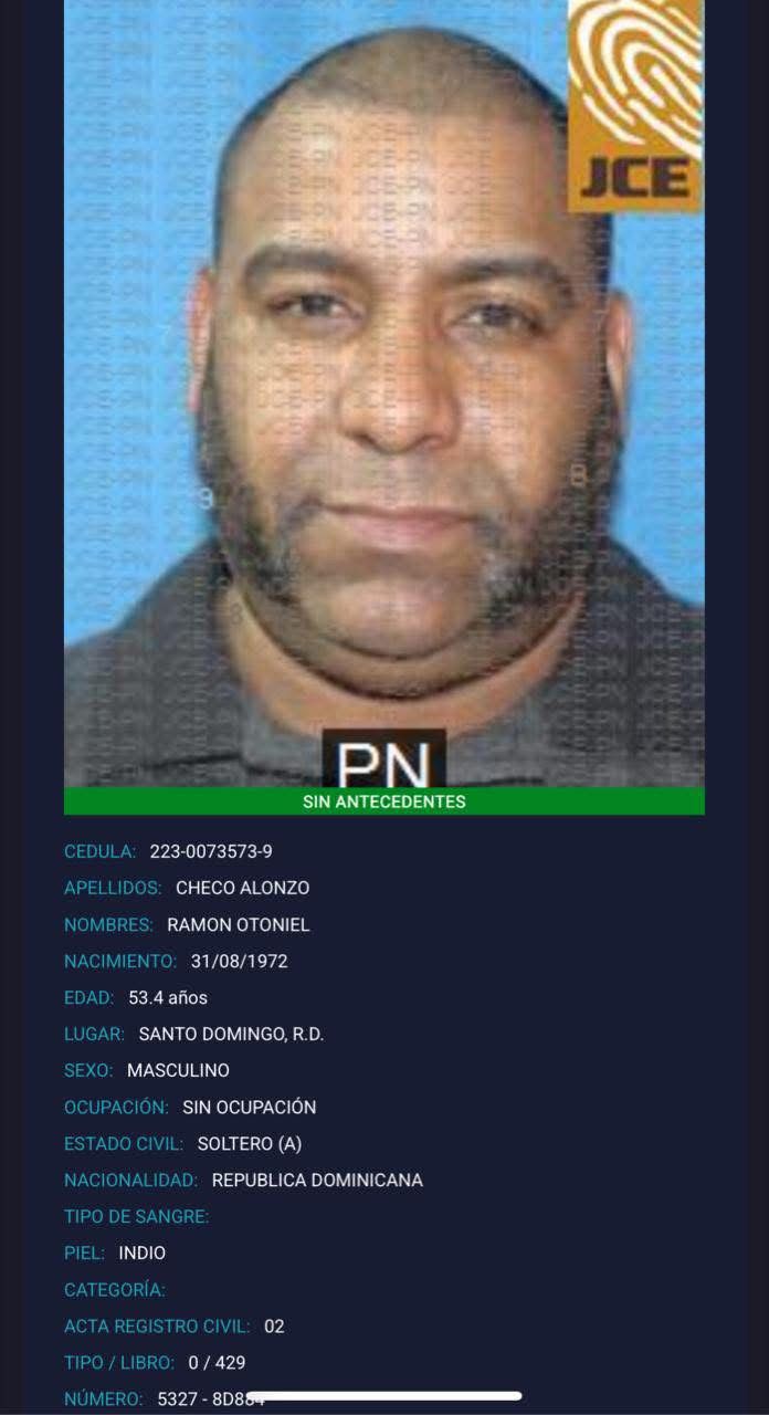 De acuerdo con informaciones oficiales, Checo Alonzo, de 53 años de edad, es oriundo de Santo Domingo y no figura con antecedentes penales en los registros disponibles hasta el momento.