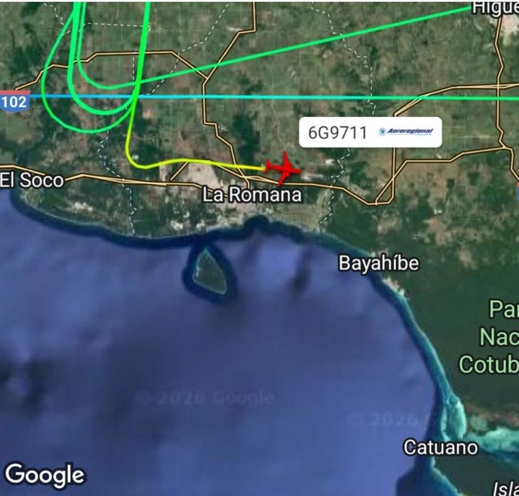 AEROPUERTO LA ROMANA.– Una aeronave Boeing 737-400, matrícula HC-CWG, operada por la aerolínea ecuatoriana AEROregional, realizó un aterrizaje de emergencia en el Aeropuerto Internacional de La Romana tras presentar una indicación de tren de aterrizaje inseguro.