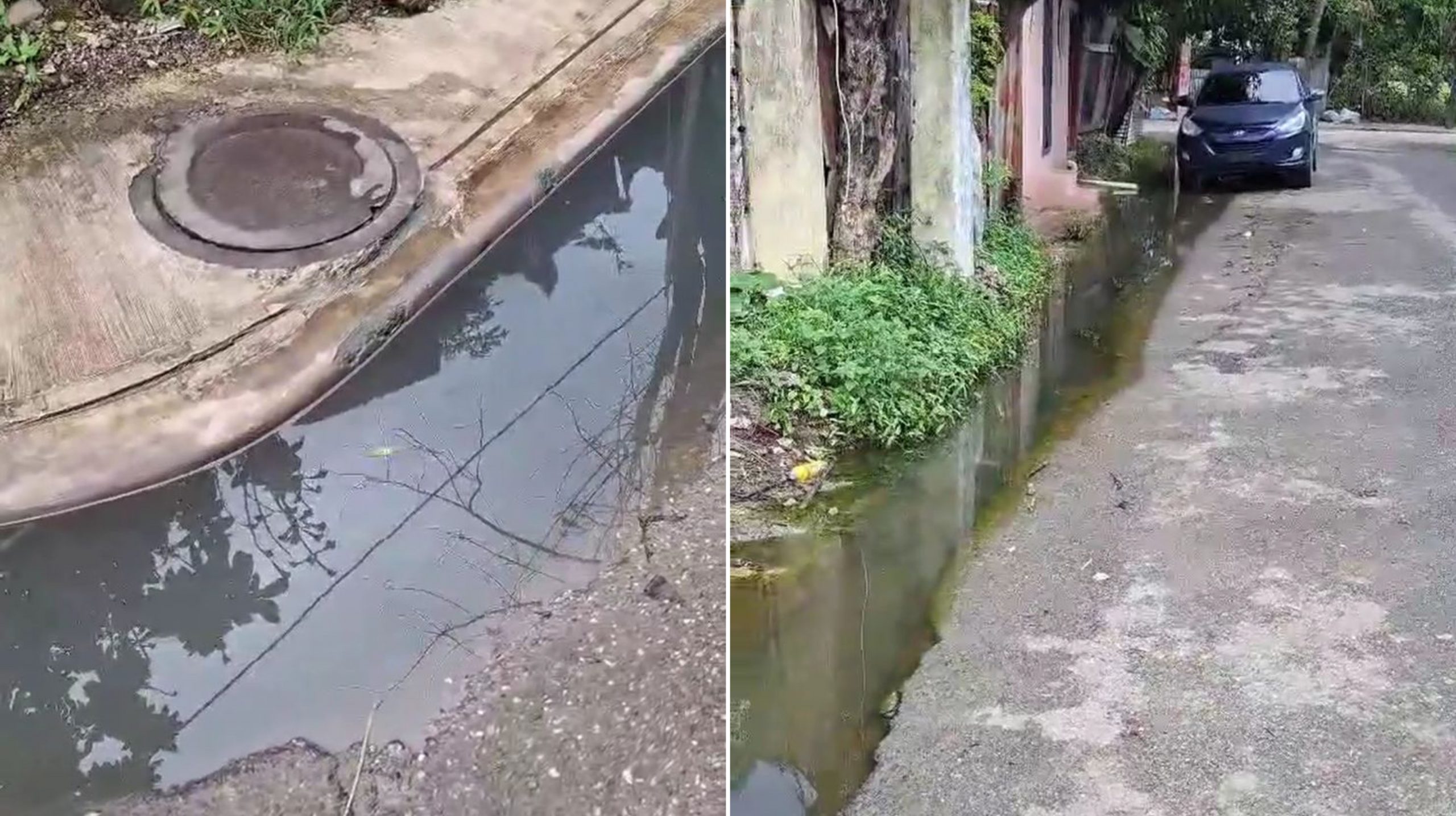 De León explicó que un registro de alcantarillado, ubicado próximo a su establecimiento comercial, se encuentra obstruido, lo que provoca el desbordamiento y estancamiento de estas aguas, generando fuertes olores, proliferación de mosquitos y condiciones insalubres que impiden el libre tránsito de peatones y vehículos por la vía.