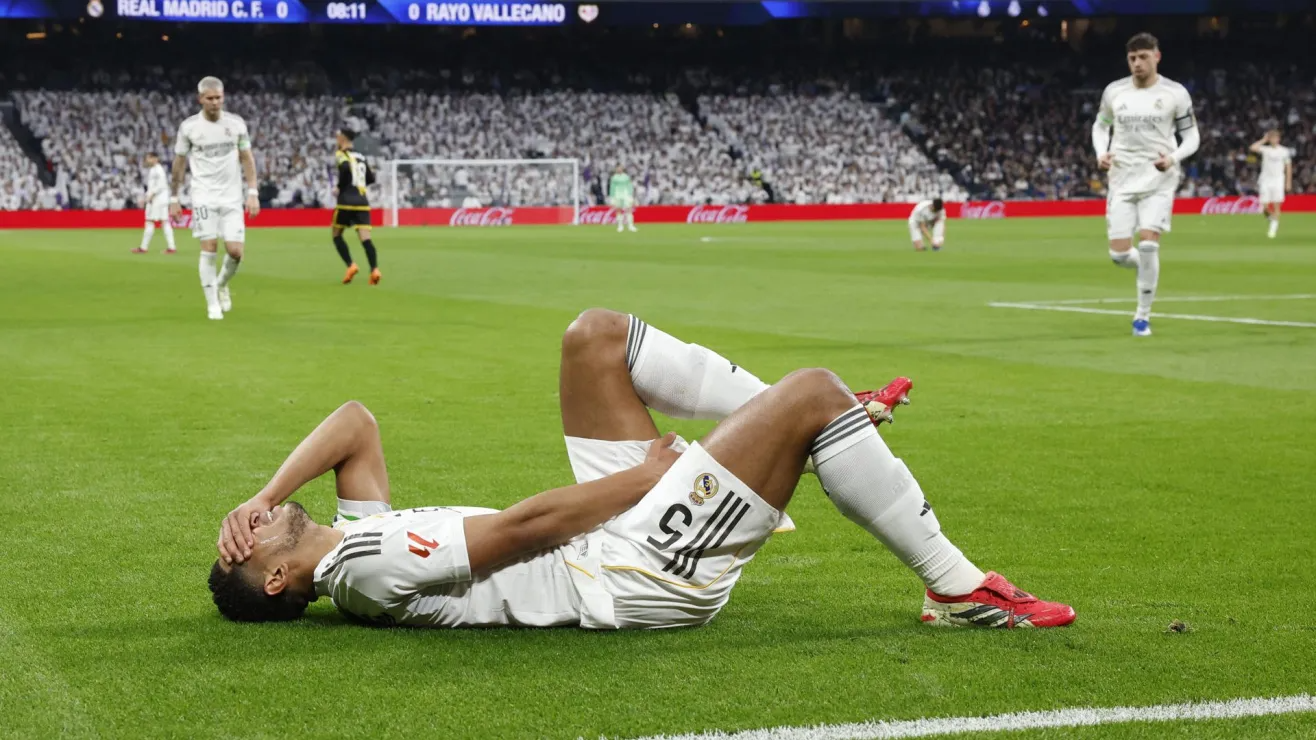 El inglés Jude Bellingham, centrocampista del Real Madrid, tuvo que abandonar el terreno de juego en el minuto 9 del duelo ante el Rayo Vallecano tras sufrir una lesión muscular en la parte posterior del muslo izquierdo, en un encuentro que terminó con victoria blanca por 2-1 en el Santiago Bernabéu.