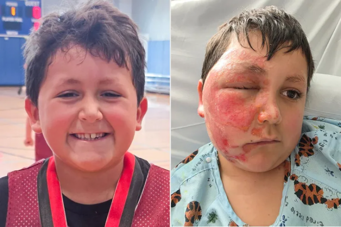 Grubb intentó enjuagar la sustancia en la ducha; sin embargo, no funcionó. Lo llevó a la sala de emergencias y luego fue trasladado al Centro de Quemados de Loyola Medicine. También visitó a un oftalmólogo para tratar su ojo, que estaba hinchado. Su visión no se vio afectada y Caleb ahora se está recuperando en casa, dijo Loyola Medicine.