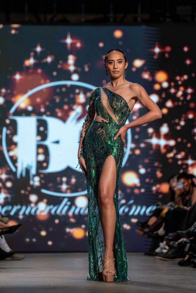 La participación del creador dominicano marcó un momento destacado dentro del festival, al presentar una propuesta que combinó estructura, dramatismo y precisión técnica, logrando captar la atención de productores, especialistas del sector y público vinculado a la alta costura.