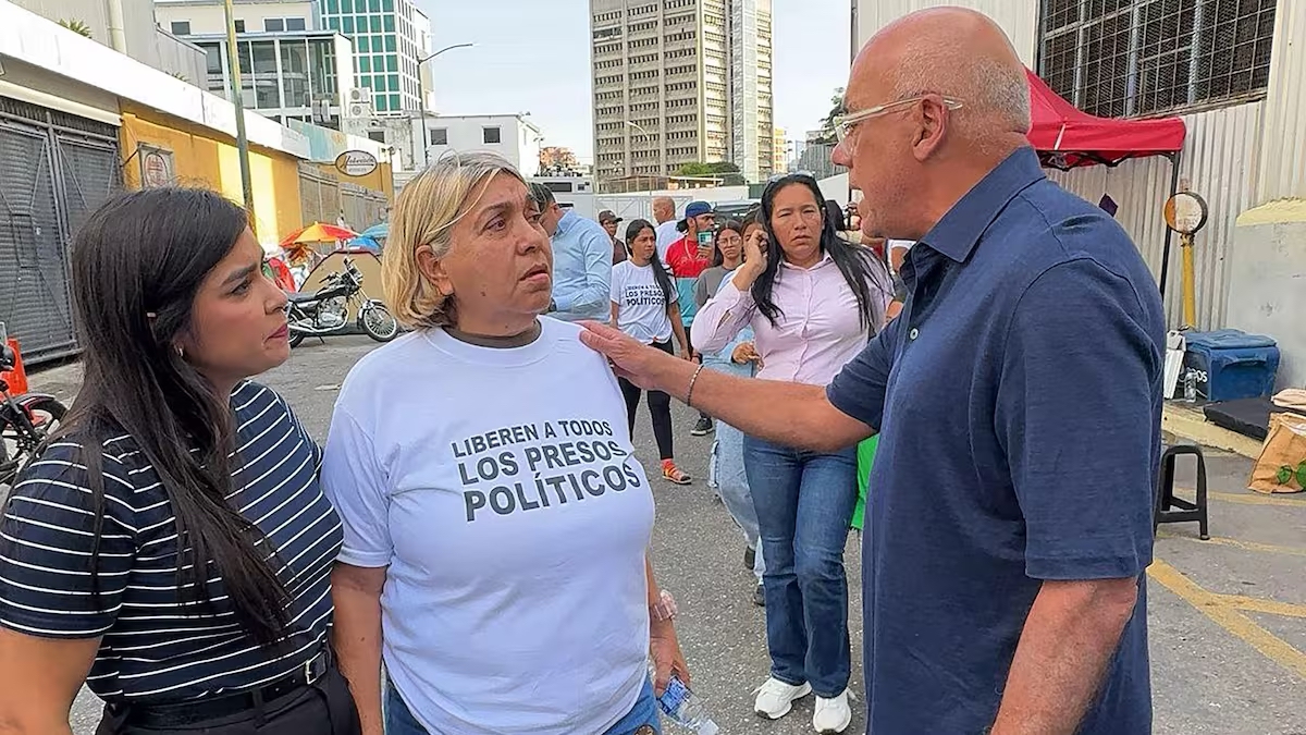 En su visita, estuvo acompañado por el diputado chavista Jorge Arreaza, con quien escuchó el llanto y testimonios de los familiares, quienes denunciaron violaciones al debido proceso de los presos políticos, así como la falta de acceso a tratamientos médicos dentro de la prisión.