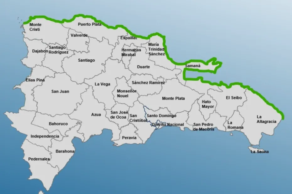 El Centro de Operaciones de Emergencias (COE), emitió alerta verde por posibles inundaciones costeras menores, con mayor riesgo durante la marea alta, para toda la granja costera desde Bahía de Manzanillo, en Monte Cristi, hasta Cabo San Rafael en La Altagracia, donde las olas pudieran alcanzar entre los 8 y 10 pies de altura.