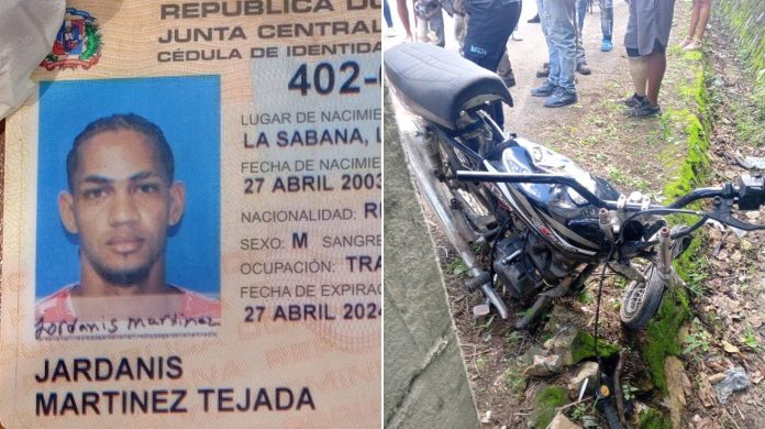 El fallecido fue identificado como Jardanis Martínez Tejada (Chupeta), de 23 años, oriundo de la comunidad La Sabana en el municipio de Luperón, quien expiró en el paraje Morillo, donde ocurrió el fatal accidente.