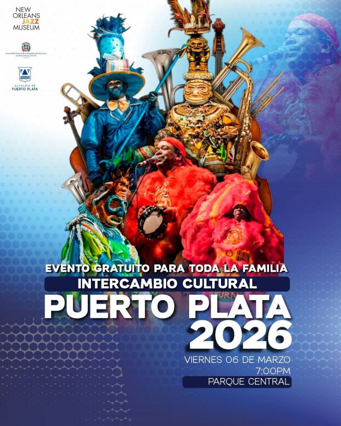 Se trata del “Intercambio Cultural New Orleans-Puerto Plata” pautado a realizarse este viernes 6 de marzo en horario de 7:00 a 11:00 de la noche, actividad gratuita para el disfrute de toda la familia con varias presentaciones artísticas.