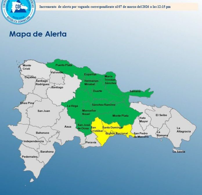 El Centro de Operaciones de Emergencias (COE) informó este sábado que incrementó los niveles de alerta en varias provincias del país y el Distrito Nacional debido a las lluvias que se registran en distintas zonas, asociadas a una vaguada que provoca un ambiente húmedo e inestable.