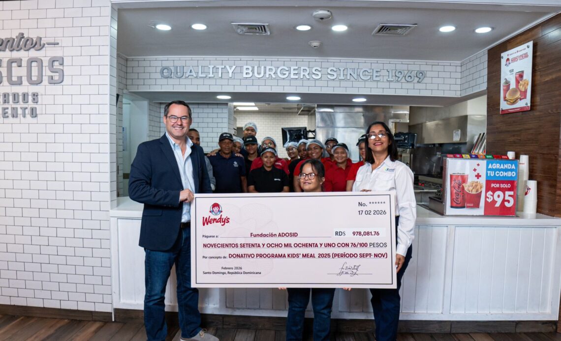 Santo Domingo, República Dominicana.– La cadena de restaurantes Wendy’s, operada en el país por Grupo Raya, realizó un donativo de RD$978,081.76 a la Asociación Dominicana de Síndrome de Down (ADOSID) como parte de sus iniciativas de responsabilidad social.