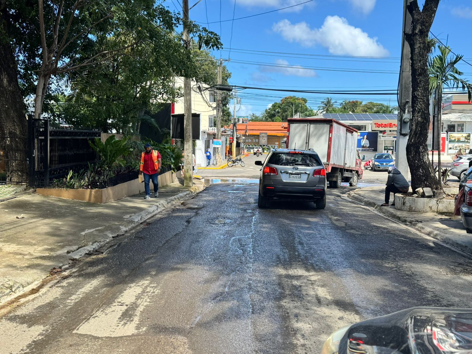 De acuerdo con los testimonios, cuando llueve el agua corre por encima de lo que queda de la calle y termina cruzando hacia el sector Batey Sosúa por la avenida principal, debido a que los drenajes no están funcionando correctamente.