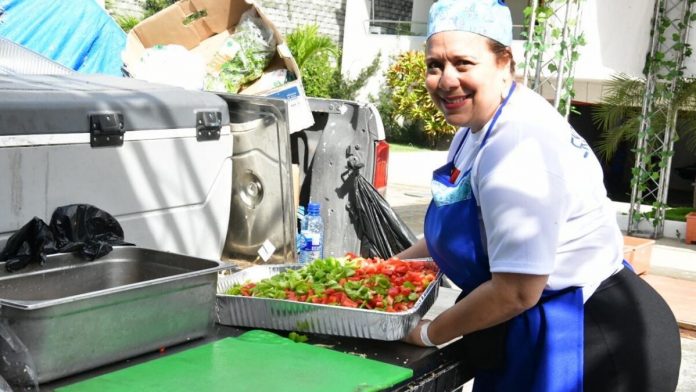 Velásquez supervisaba cada etapa del proceso, desde el movimiento del caldero hasta la distribución de las raciones. Su experiencia en este tipo de eventos no es casual. Durante más de veinte años ha impulsado proyectos gastronómicos que buscan destacar la cocina dominicana y llevarla a espacios públicos.