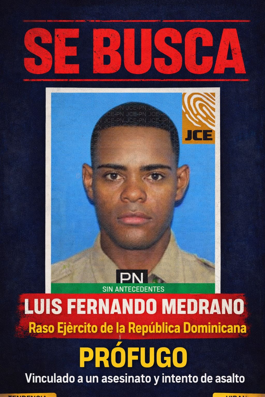 El implicado fue identificado como Luis Fernando Medrano, oriundo del distrito municipal Chirino, provincia Monte Plata, quien habría abandonado la escena al notar la presencia de agentes de la Policía Nacional.