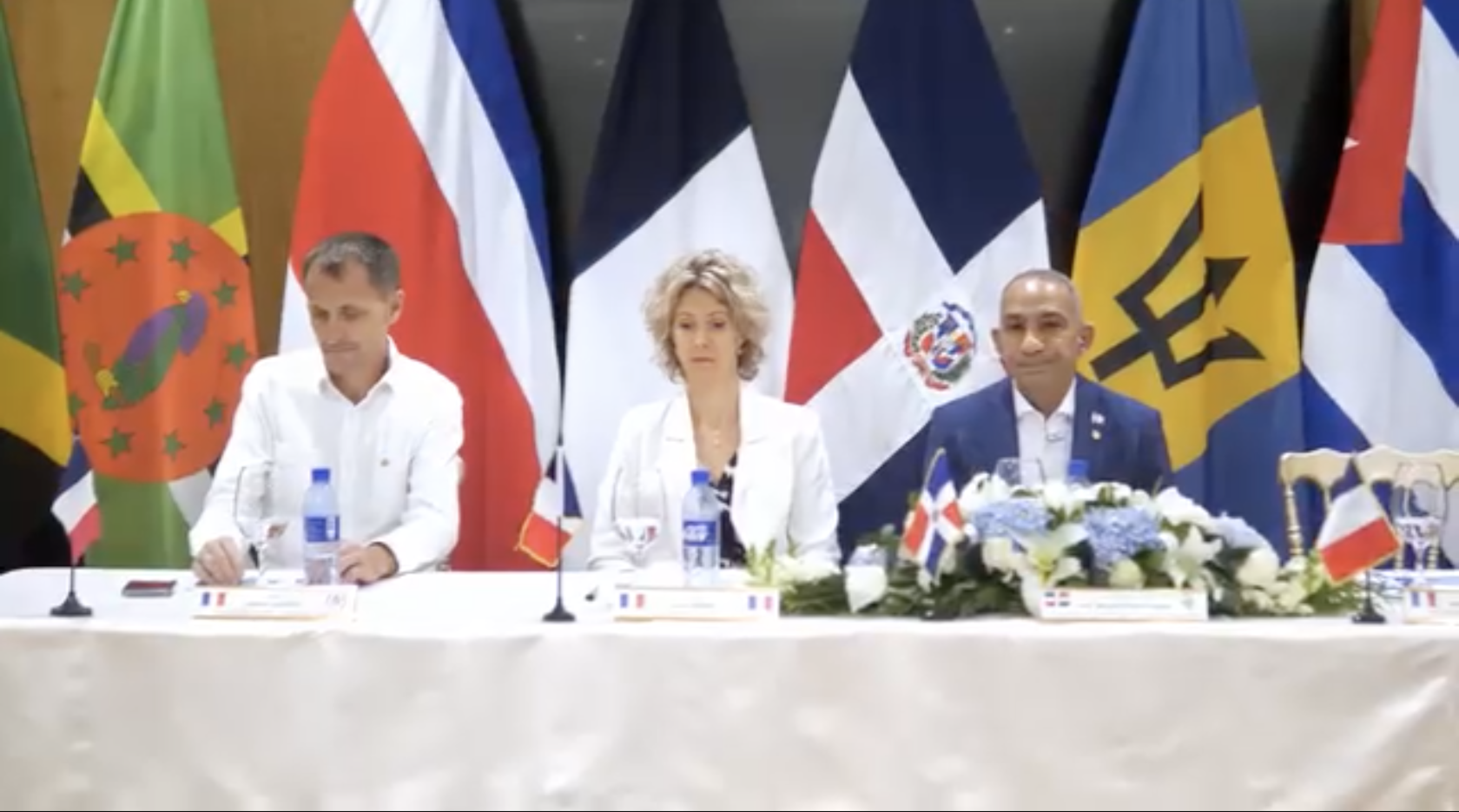 La ceremonia de clausura estuvo encabezada por el coronel paracaidista Rafael Ubiera Peralta, FARD, director de Asuntos Internacionales de la DNCD, en representación del vicealmirante José Manuel Cabrera Ulloa, ARD, presidente de la institución. También participó el comisario general de policía Grégory-Hugues Frely, agregado regional Haití-RD-Jamaica, en representación de la embajadora de Francia, Sonia Barbry.