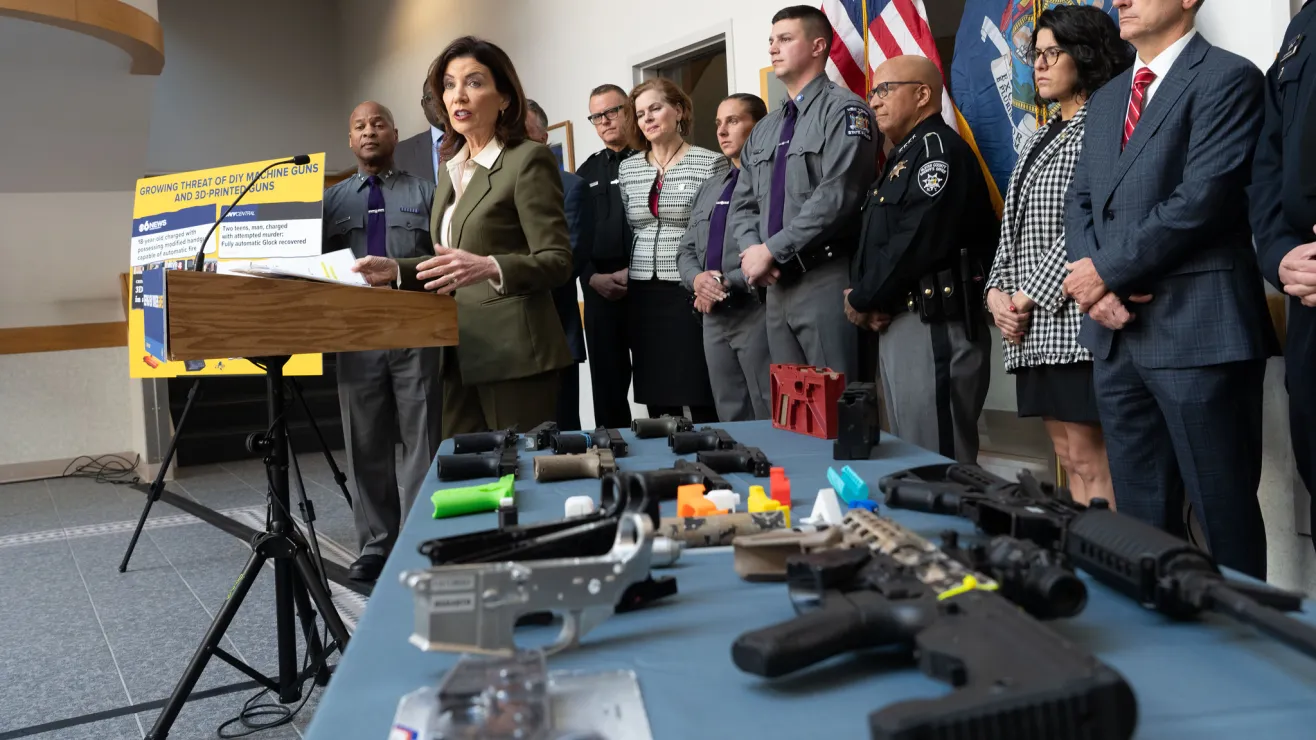 Para hacer frente a estas amenazas a la seguridad pública, la gobernadora Kathy Hochul propuso una legislación para reforzar las normas de seguridad de estos productos, exigiendo a los fabricantes de armas de fuego que diseñen sus pistolas de tal manera que se impida su sencilla conversión en armas automáticas de fabricación casera.