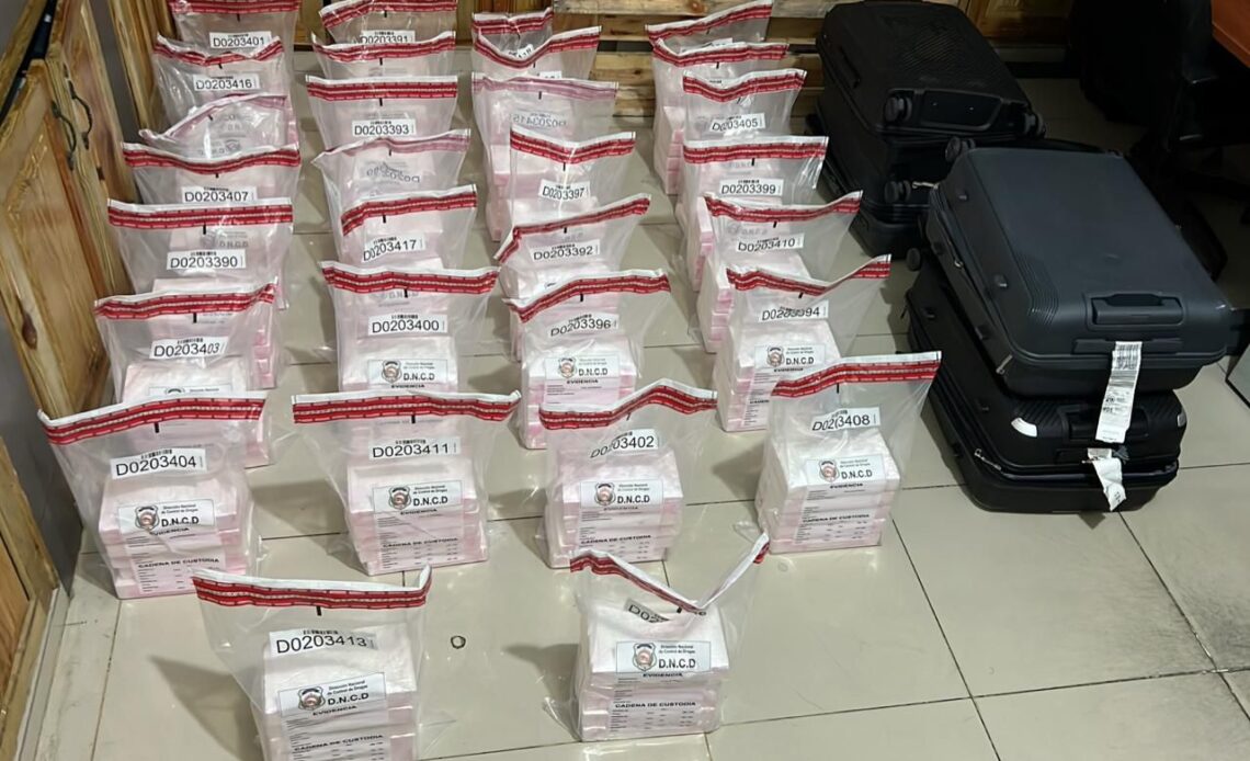 Santo Domingo.- Agentes de la Dirección Nacional de Control de Drogas (DNCD) y miembros del Cuerpo Especializado de Seguridad Aeroportuaria y de la Aviación Civil (CESAC), bajo la coordinación del Ministerio Público, incautaron 150 paquetes de cocaína en el Aeropuerto Internacional de Punta Cana, provincia La Altagracia.