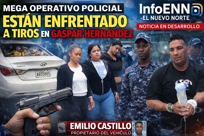 Gaspar Hernández, RD.– Un intenso operativo policial encabezado por miembros de la Policía Nacional y agentes de la Dirección Central de Investigaciones Criminales (DICRIM), bajo la dirección del teniente Almonte, culminó con una persecución y enfrentamiento a tiros contra presuntos delincuentes que estarían vinculados a una serie de robos en la región norte del país.