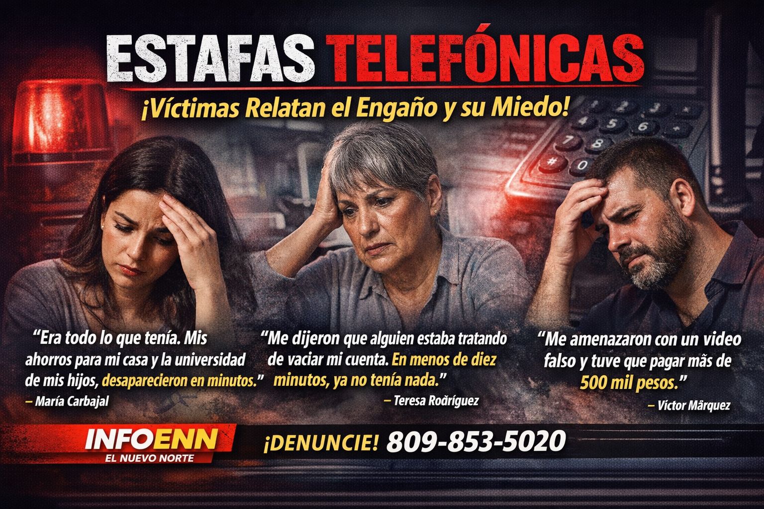 De acuerdo con testimonios recopilados por InfoENN – El Nuevo Norte, los estafadores han perfeccionado sus métodos, utilizando esquemas organizados que combinan miedo, presión psicológica y manipulación para lograr su objetivo.