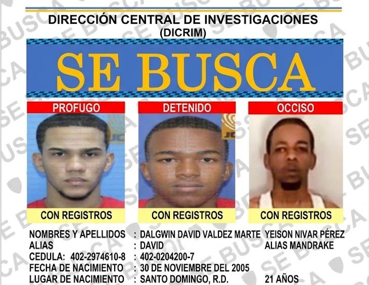 Durante el operativo, realizado por agentes de la Dirección Central de Investigación (DICRIM), también fue detenido en flagrante delito Dalgwin David Valdez Marte, mientras que otros implicados han sido identificados y permanecen prófugos.