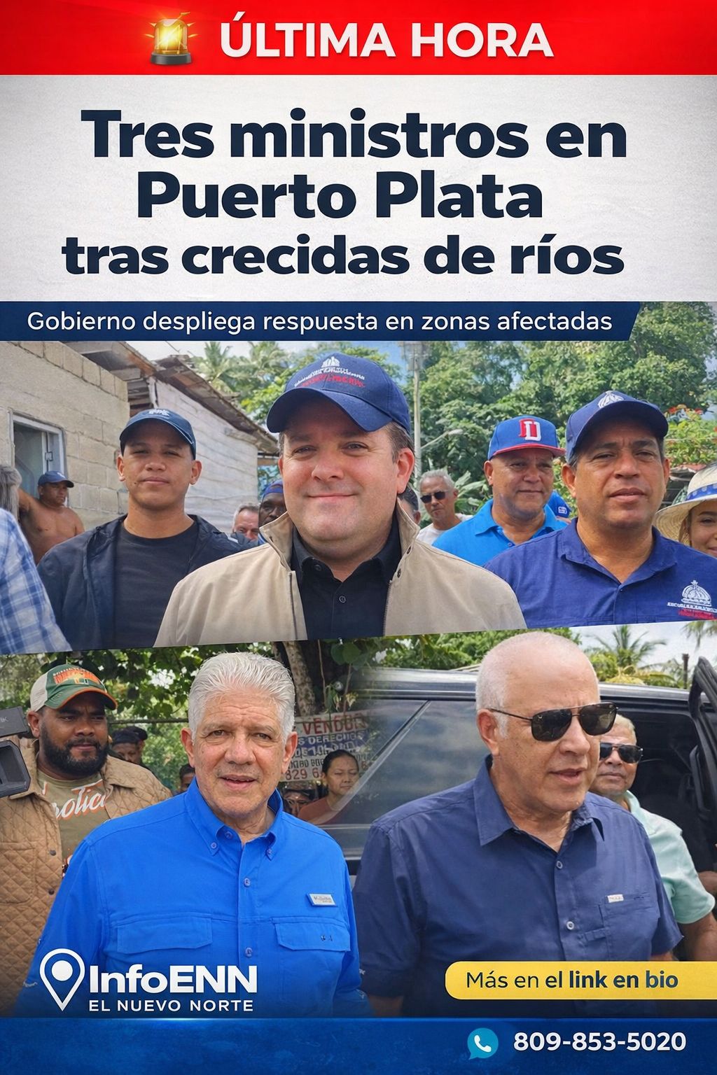 InfoENN – El Nuevo Norte- Puerto Plata, RD.– El Gobierno dominicano desplegó este domingo a tres ministros en la región Norte para dar respuesta inmediata a los daños provocados por las recientes lluvias y crecidas de ríos que han afectado varias comunidades.