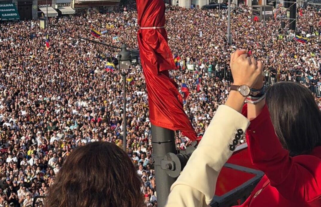 El acto en la Puerta del Sol marcó el cierre de su agenda en España, donde sostuvo reuniones con líderes políticos y reforzó el respaldo internacional a la causa venezolana, en medio de una movilización que refleja la esperanza de la diáspora en un eventual cambio político.