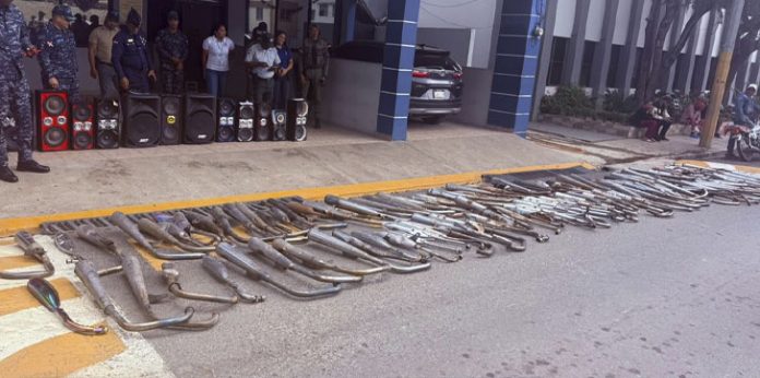 LA VEGA.- Como parte de los operativos preventivos para garantizar el orden público y reducir la contaminación sónica, agentes de la Policía Nacional destruyeron un total de 142 mofles que habían sido instalados de manera irregular en motocicletas, generando altos niveles de ruido en distintas zonas del municipio.