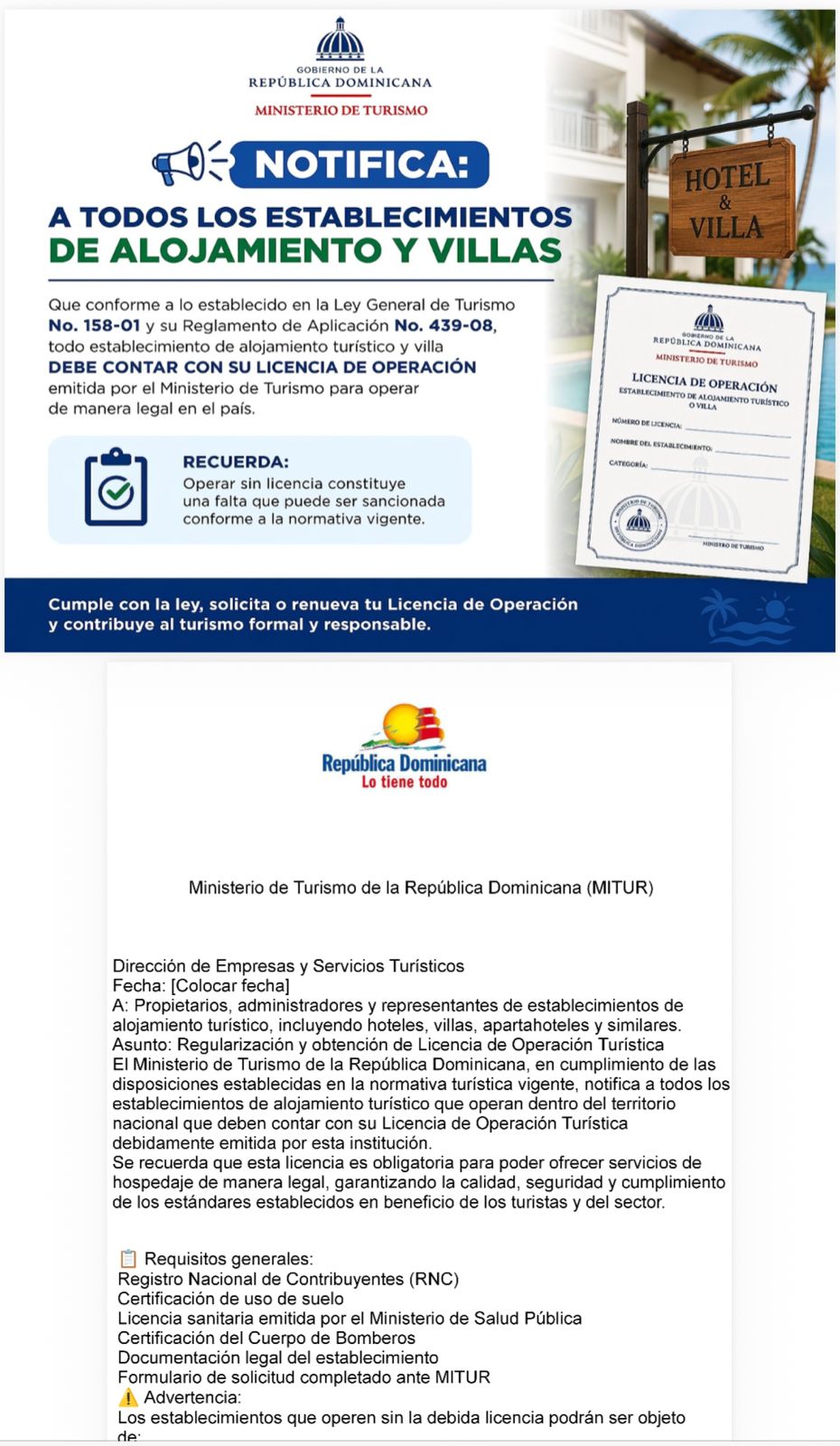 El Nuevo Norte – Santo Domingo / Puerto Plata. — El Ministerio de Turismo (MITUR) confirmó que no tiene ninguna relación con los mensajes que están siendo enviados vía WhatsApp a propietarios de alojamientos tipo Airbnb, en los que supuestos “inspectores” solicitan información legal y contable bajo el argumento de procesos de certificación.