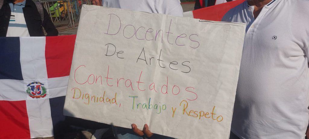Profesores contratados por el Ministerio de Educación de la República Dominicana (Minerd), en las modalidades de Arte y Técnico Profesional, denunciaron este lunes durante una protesta frente al Palacio Nacional que tienen cinco meses trabajando sin cobrar.